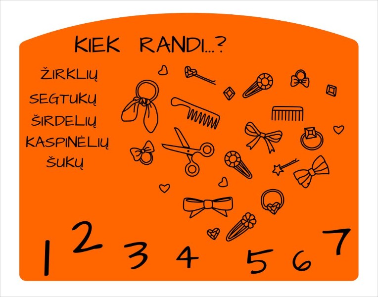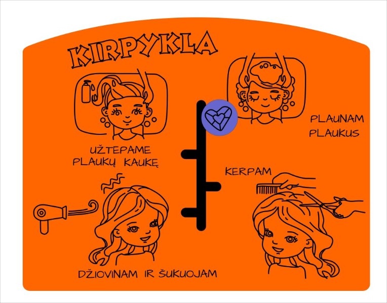 Edukacinių žaidimų serija kirpyklos tema su judančiais žaidimo elementais. Galimi keli skirtingų spalvų deriniai.