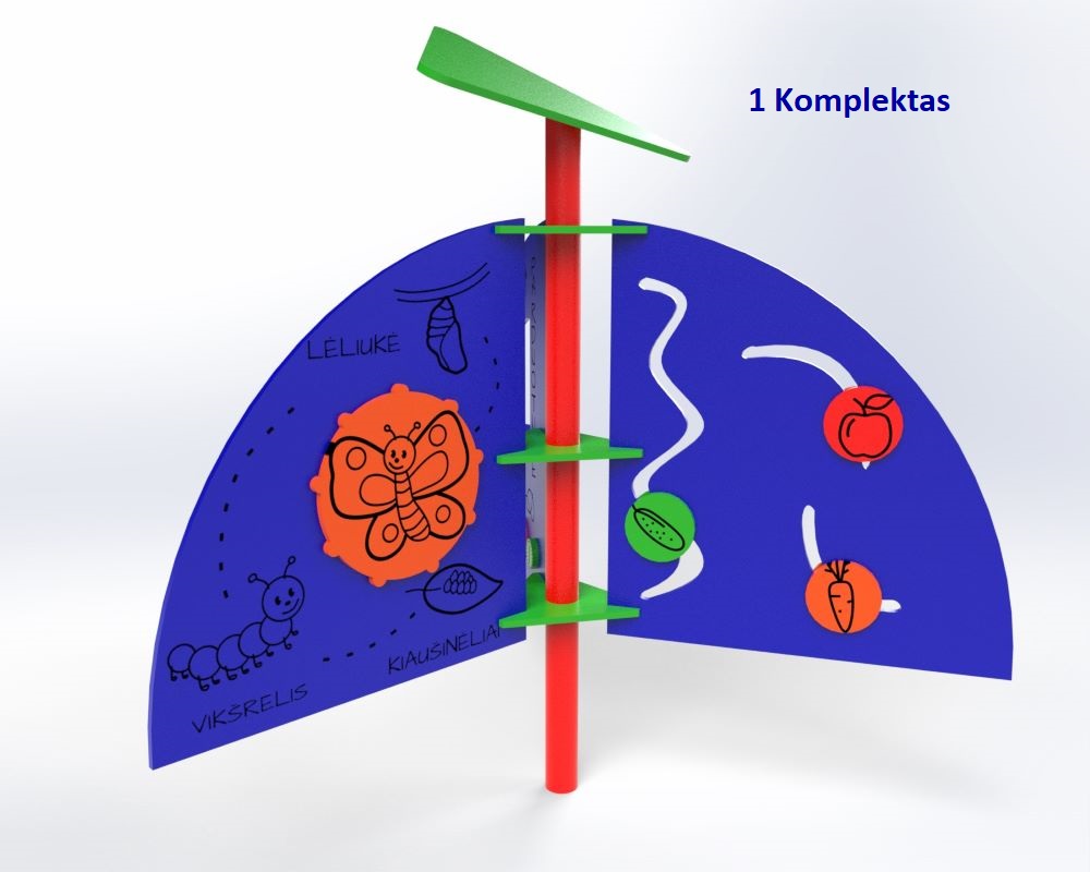 Susideda iš stovo ir trijų edukacinių plokštelių su judančiais elementais.