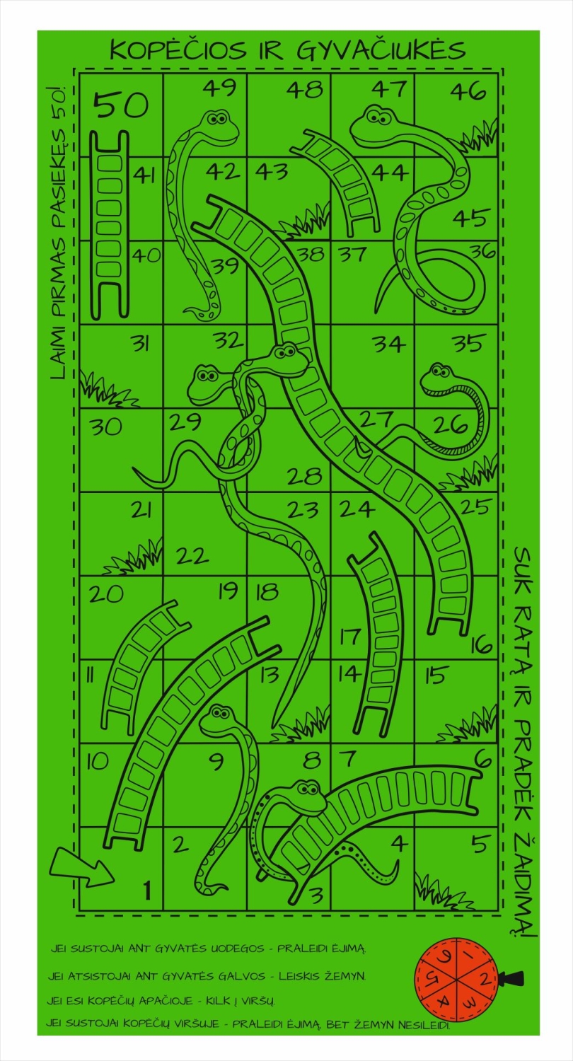 Žaidimo taisyklės parašytos ant pačios lentos.