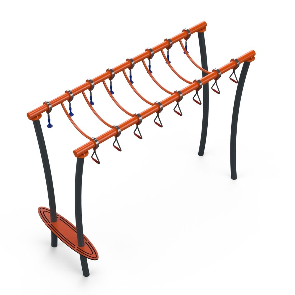 Nindzių iššūkio kliūtis įveikiama rankomis kabant su trijų rūšių karstymosi elementais - skersiniai, rankenos ir žiedai.