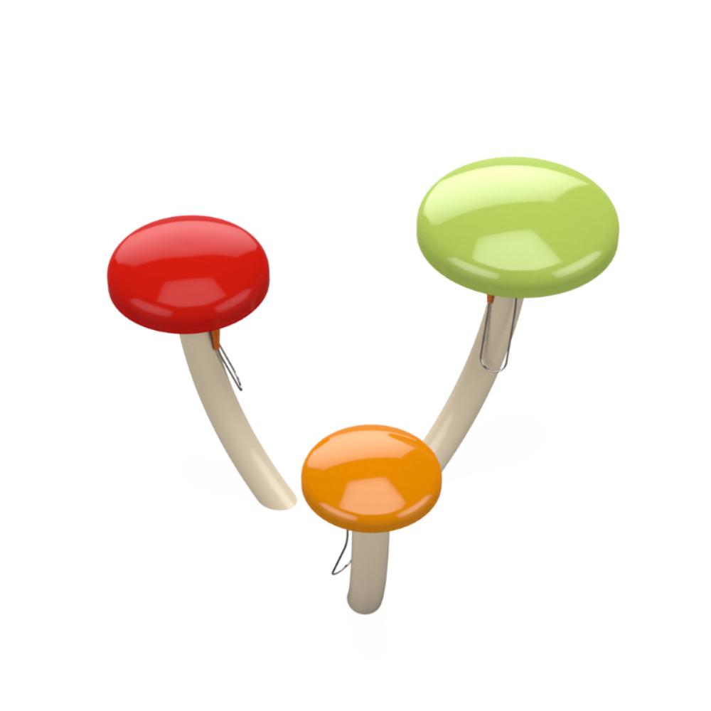 Premium klasės teminis grybų pavidalo lauko muzikos instrumentas. Kiekvienas grybas yra kitokio skersmens, su gongu ir skleidžia skirtingas natas. Šis instrumentas yra intuityvus ir paprastas naudoti.