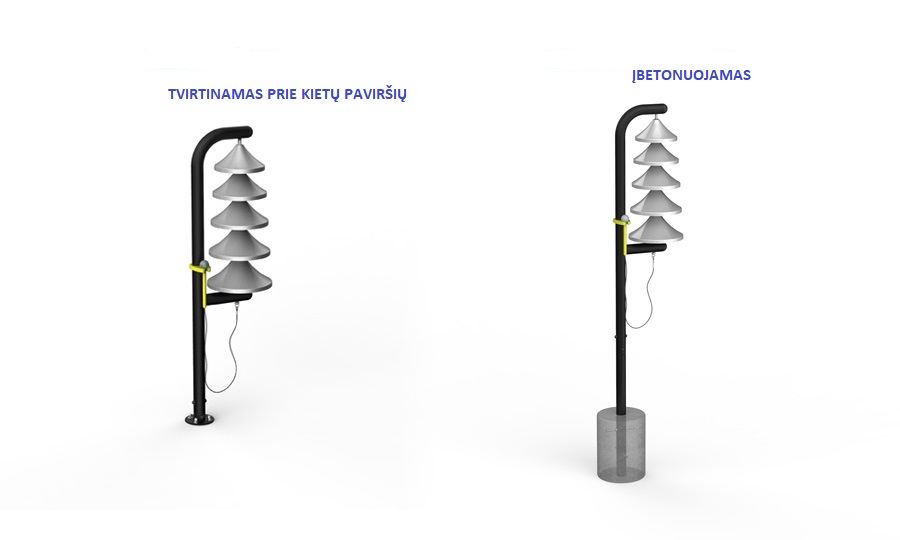 - pritvirtinti prie kietų paviršių, pvz., betono plytelių ir pan.