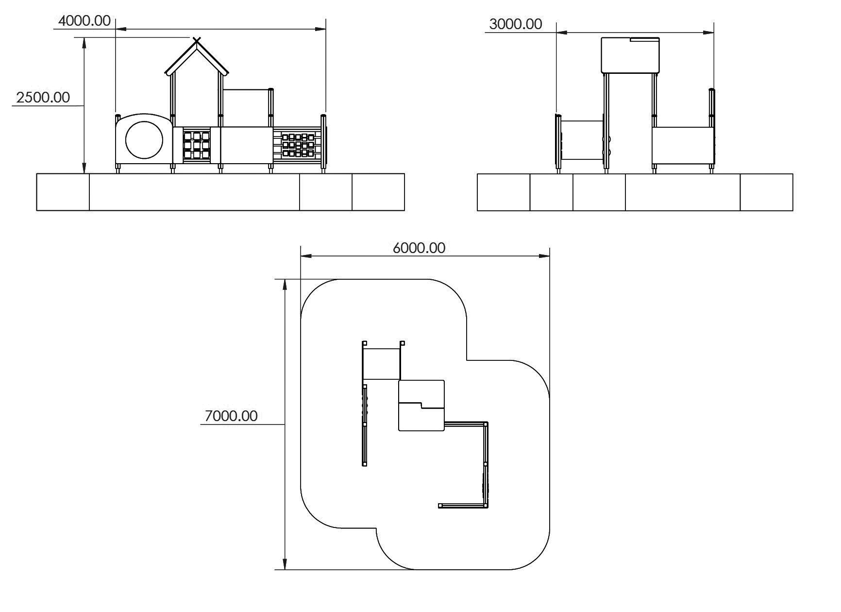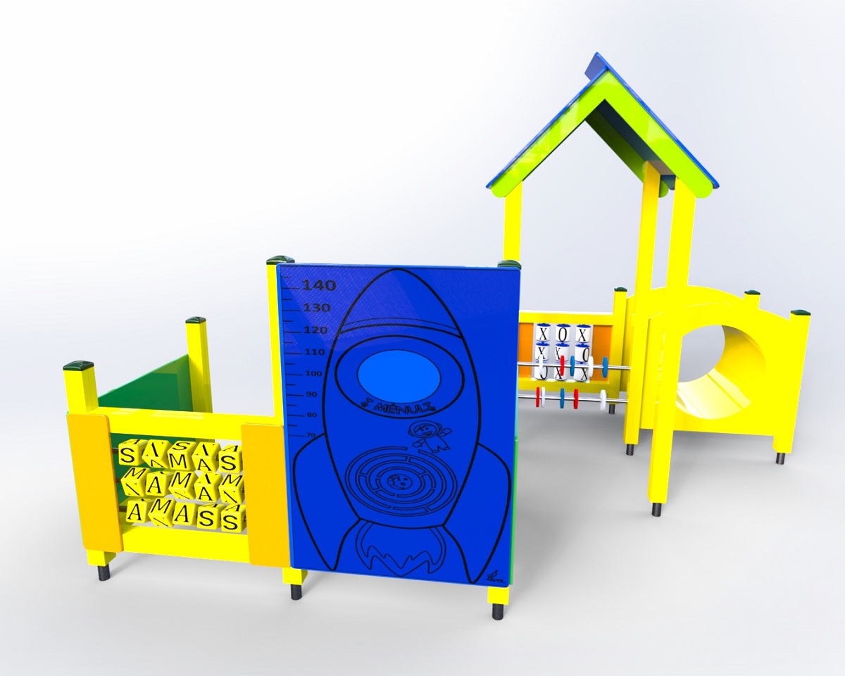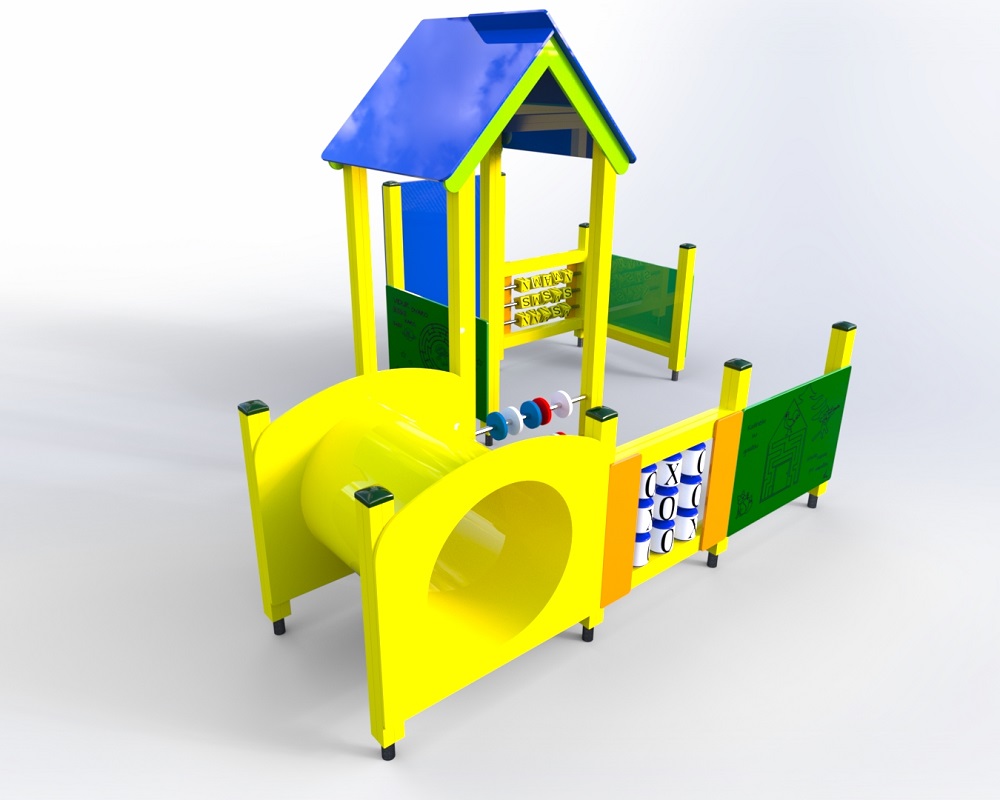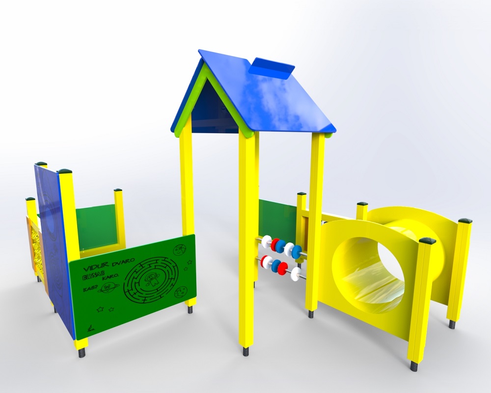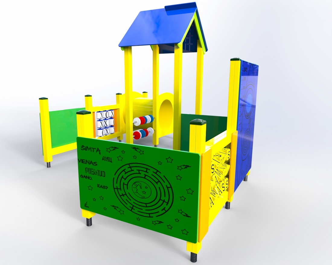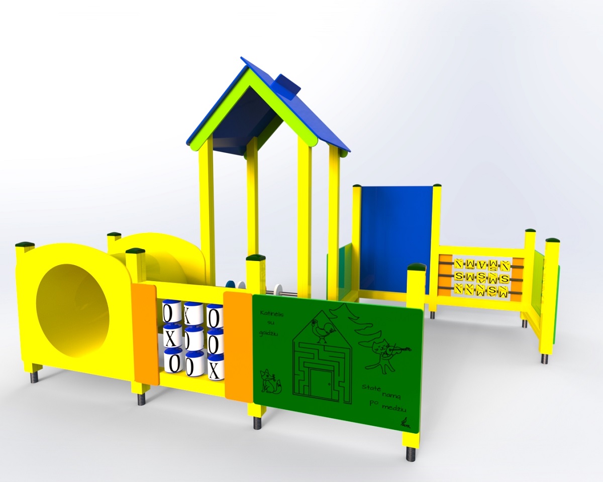Namelis su septyniais edukaciniais žaidimais ir tuneliu.