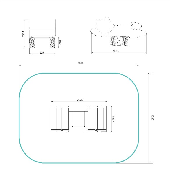 Teminės sūpuoklės su spyruokle keturiems vaikams.