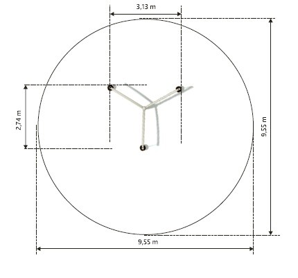 Karuselės tipo supynės su trejomis sėdynėmis.
