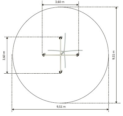 Karuselės tipo supynės su keturiomis sėdynėmis.
