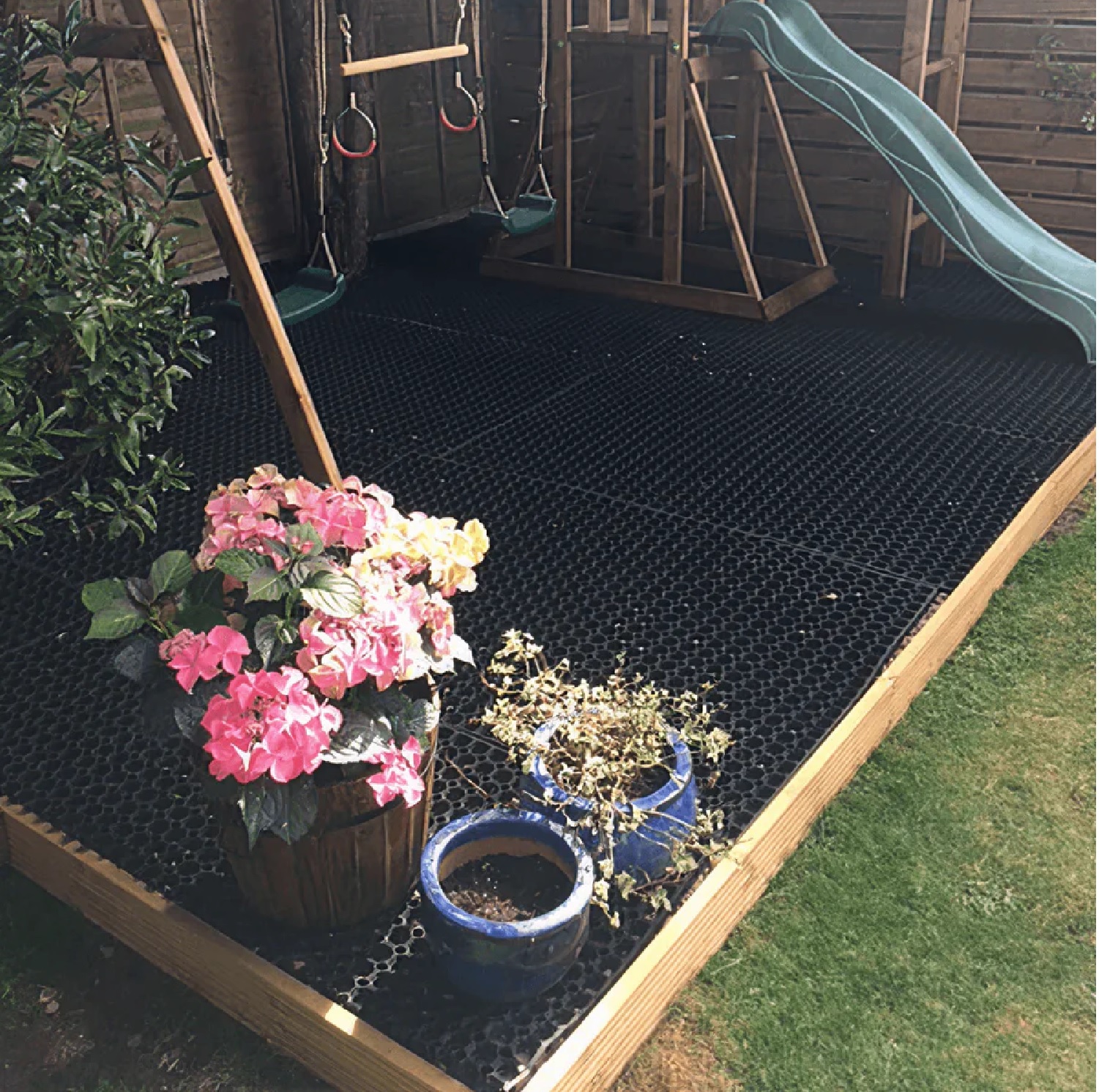Greitai įrenginėjama korėtos gumos kilimėlių danga. Kilimėliams nereikalingas pagrindo paruošimas, dangą galima įrengti greitai ir kokybiškai, įrengimas nereikalauja specialiųjų įgūdžių.